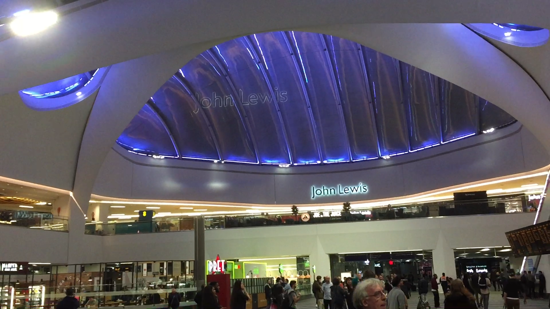 Once I got to Birmingham New Street, my immediate reaction (to paraphrase my thoughts politely) is that the station is massive! It’s a huge, wide-open space with loads of platforms and tons of shops, with a huge shopping centre on the upper levels featuring a John Lewis store among other big names. The station does look impressive, including the windowed ceiling in the main concourse.