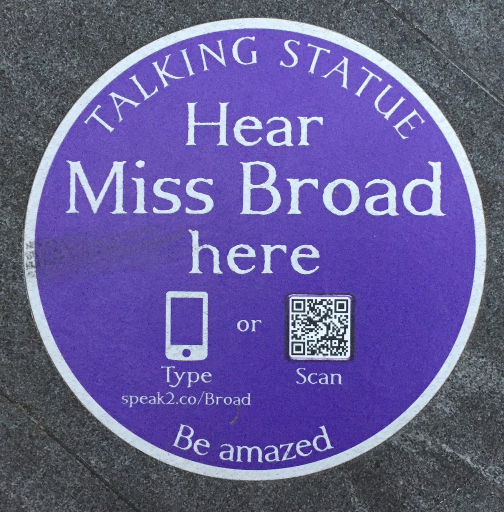 The next day I went on a walk to find some more of the Talking Statues that are spread around the city. Basically, a selection of statues in the city have a plaque attached to them, on which you can scan a QR code with your phone (or manually type in the short web address) to hear the person in the statue talking to you, voiced by a variety of celebrities including Game of Thrones actress Maisie Williams, stand-up comedian Sara Pascoe and radio presenter Ken Bruce. It’s really cool, because you learn some really interesting things, and it introduced me to parts of the city that I hadn’t known about and might never have discovered otherwise.