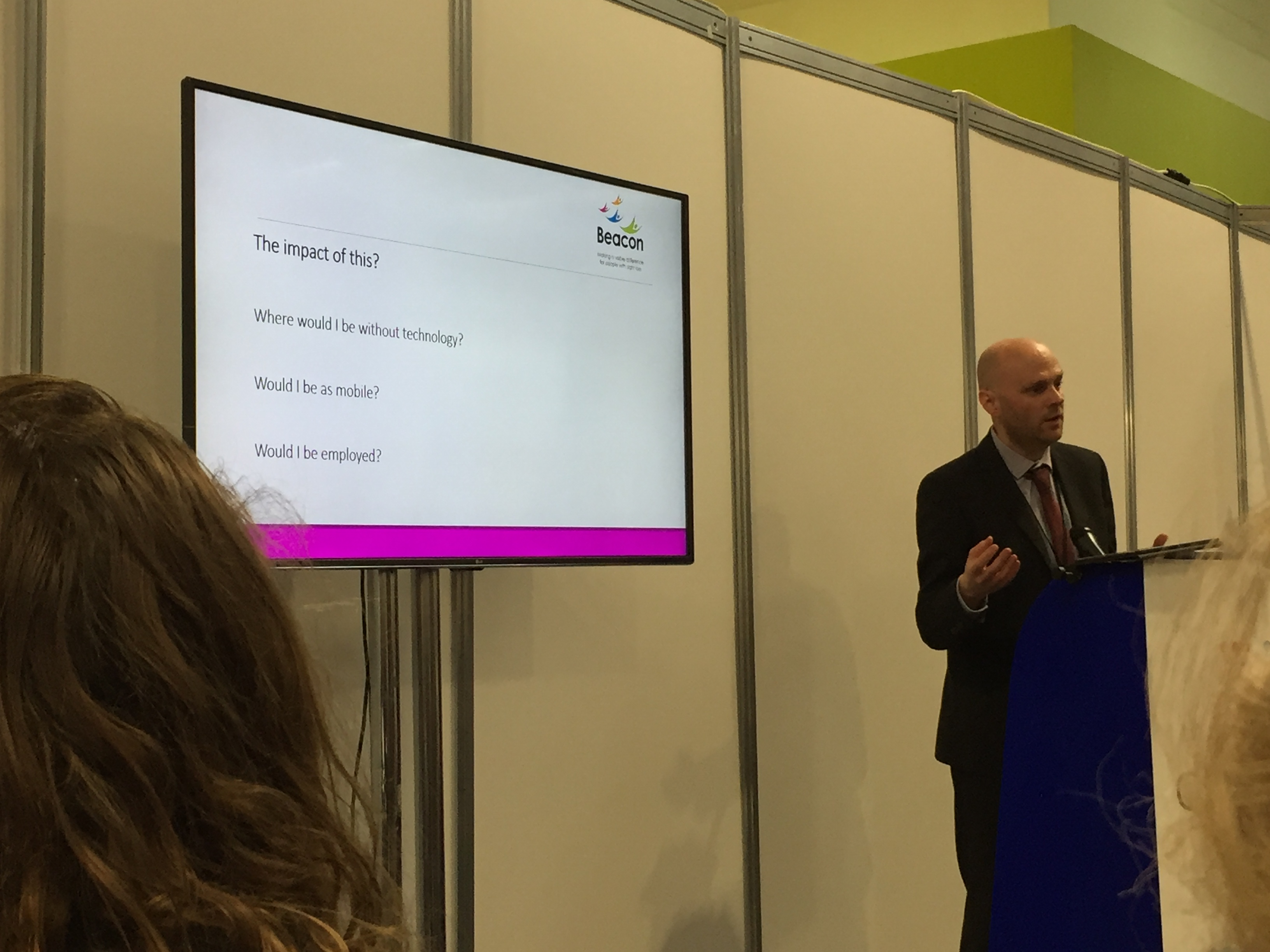 This next talk was by Matt Harrison from Beacon Centre. Matt is visually impaired, and his charity supports visually impaired people, so the apps here were generally geared towards that, but many of them are useful for others too. The aim was to show people the kind of things that are out there for people with sight loss – not just for that type of audience, but also to inform those who work with and care for people like us, to raise awareness.
