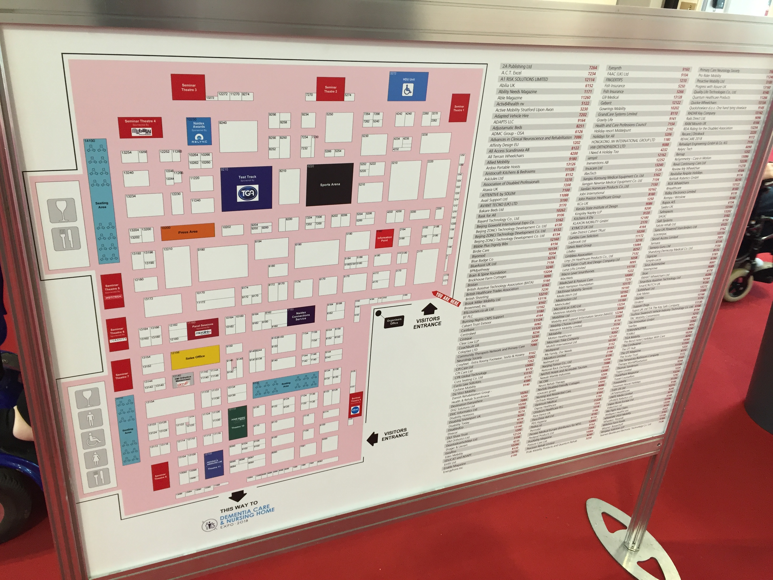 Finding the show in the building was easy as well. I just followed the crowd around the large concourse to one of the many exhibition halls, passing places to eat and drink on the way. There were multiple shows going on in the building – and it transpired later that 2 of my work colleagues were at one of them – but the Naidex hall was very clearly signposted, so I spotted it easily.