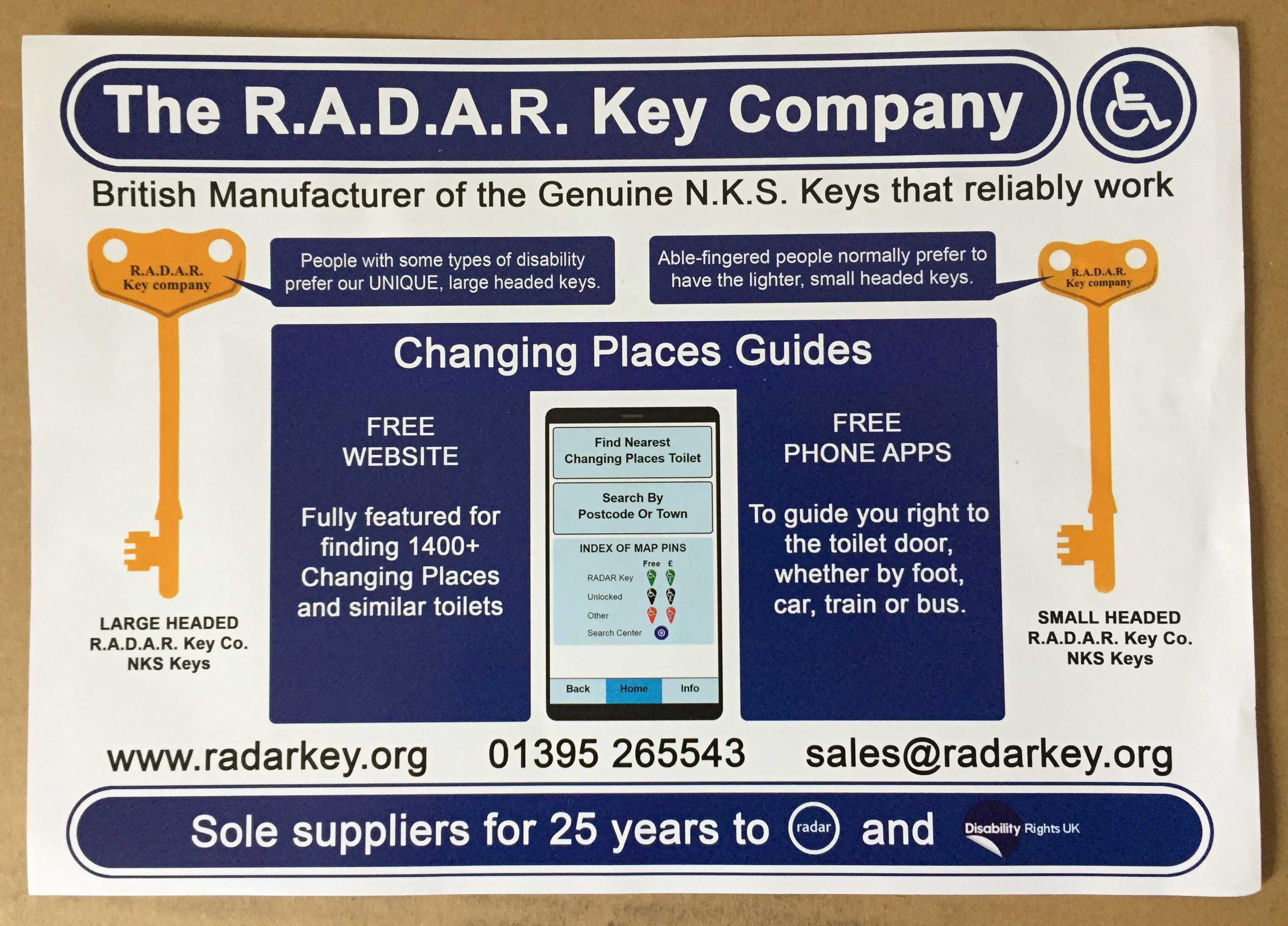 RADAR Key Company make official Radar keys that are used to access disabled toilets throughout the UK. And they’ve now produced a free website and app with comprehensive information about Changing Places Toilets, which was their big promotion at the event. They’re also working on a website and app to help you find over 10,000 accessible toilets, including those that don’t require a Radar key, so it’ll be worth keeping an eye out for that.
