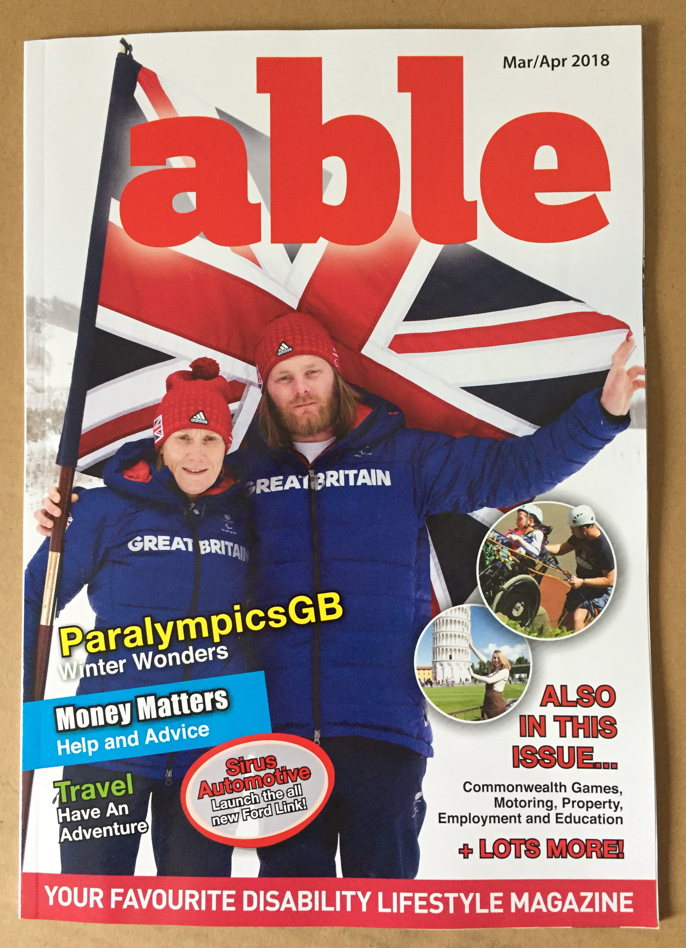 Able Magazine is a disability lifestyle magazine that’s been going for 24 years already. The March/April issue that I picked up includes articles about Commonwealth Games and Winter Paralympics, interviews with Amy from Wandering Everywhere, actress Lisa Hammond and MP Sarah Newton, and articles about fundraising with Newfoundland dogs, smart devices and home automation, spring activity ideas, hiring a personal assistant, buying a powered wheelchair, and lots more. So I really liked this magazine too, again because it has a great variety of content and is designed really well.