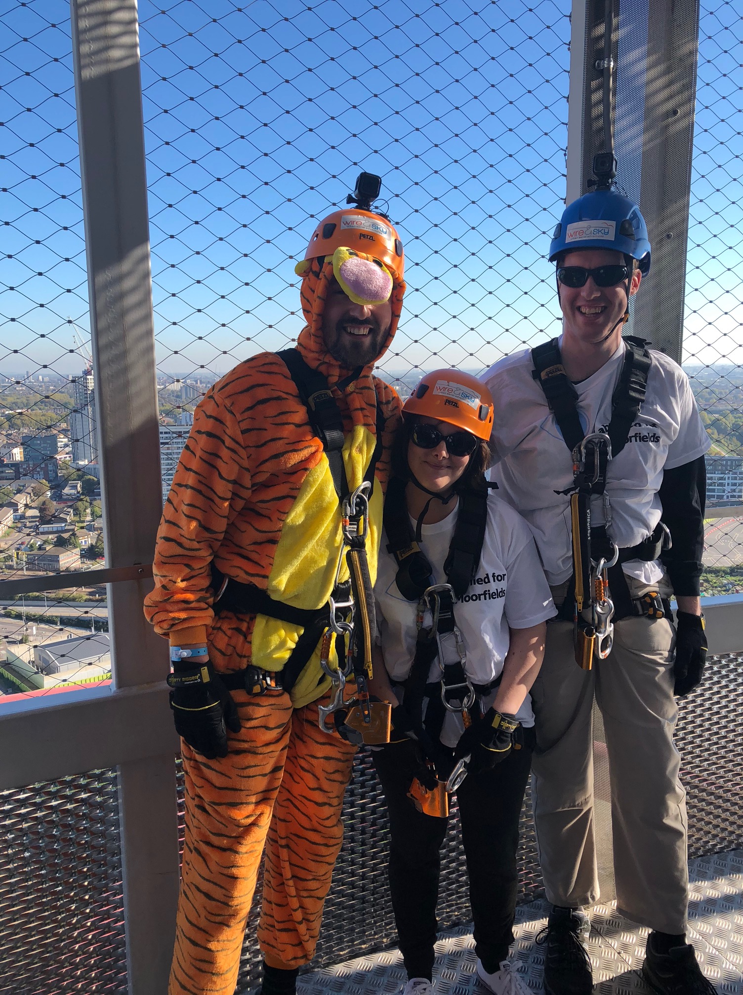 So the three of us got kitted up together, with Matt changing into his cute Tigger outfit! Luckily nobody had tried to get me into fancy dress, but credit to Matt for doing it!