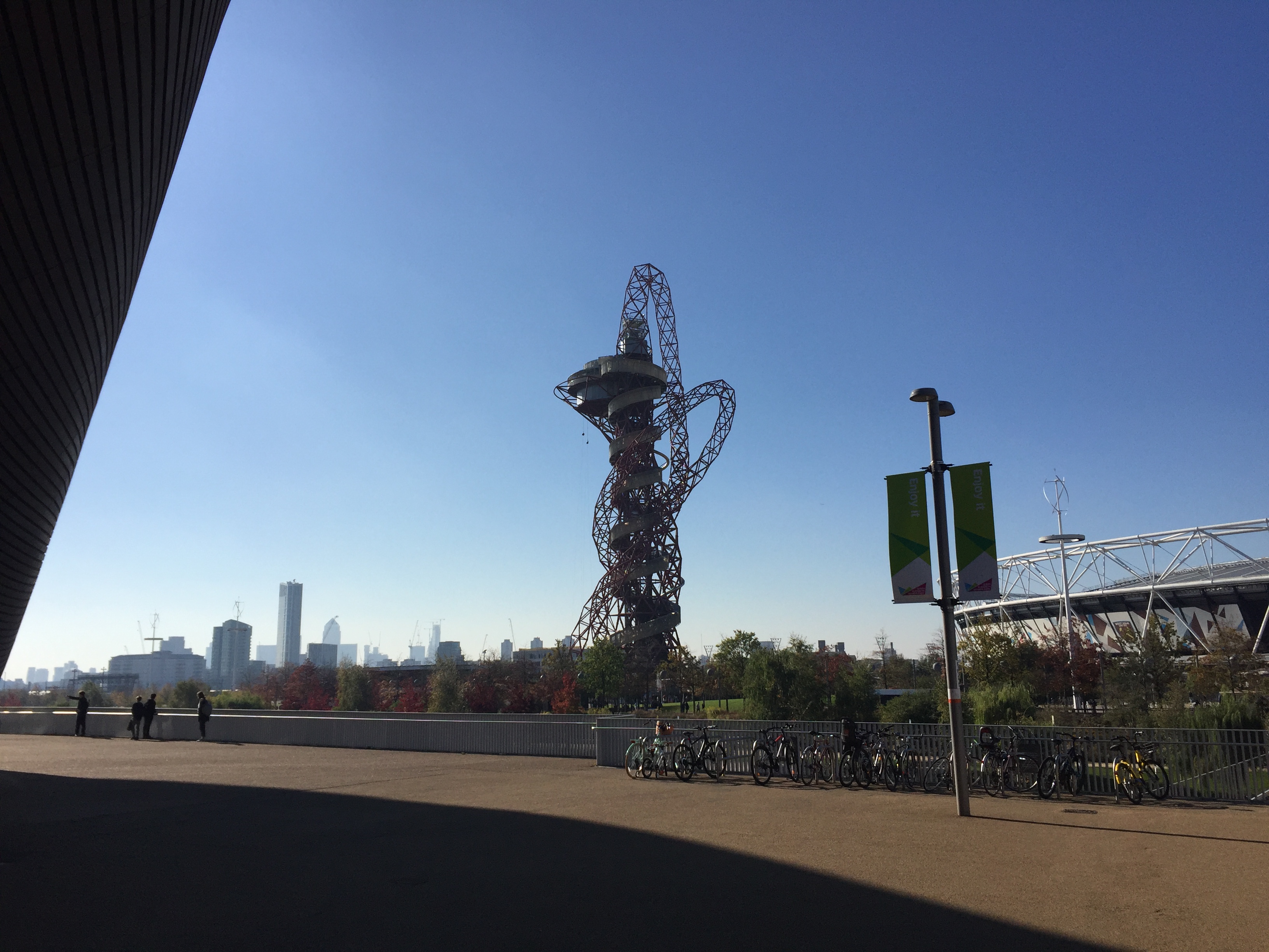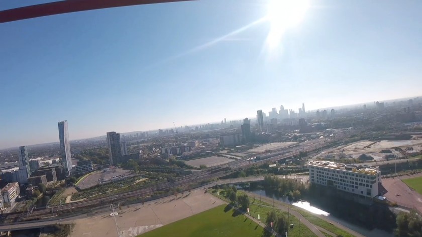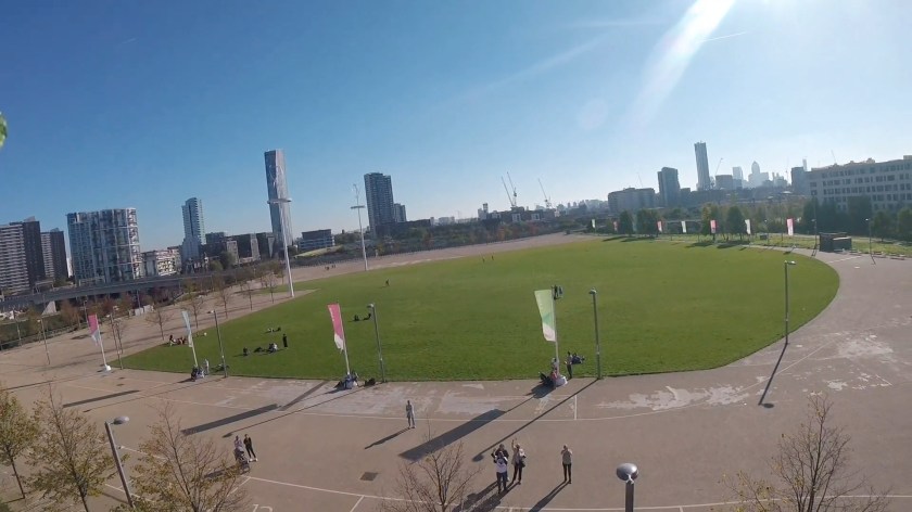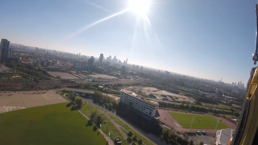 I could also see the Aquatics Centre on my left, with its distinctive curving roof and big glass windows, and the huge London Stadium on the right, while directly below was a large grassy area where our friends were cheering us on.