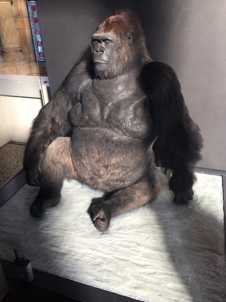 First I explored Hintze Hall, which is the main hall of the museum. I’ve seen some of its delights in the past, using the audio described guides for the ground floor and first floor, but I knew there was still a lot more to see. So I had a detailed look around this time, from the ground floor right up to the painted ceiling. It’s amazing how much is in that incredible space, before you get to any of the galleries, as you can see in my photos of the blue whale skeleton, ground floor displays & decorations, upper floor displays and painted ceiling. And if you want to learn even more, there’s a great audio guide by Sir David Attenborough.