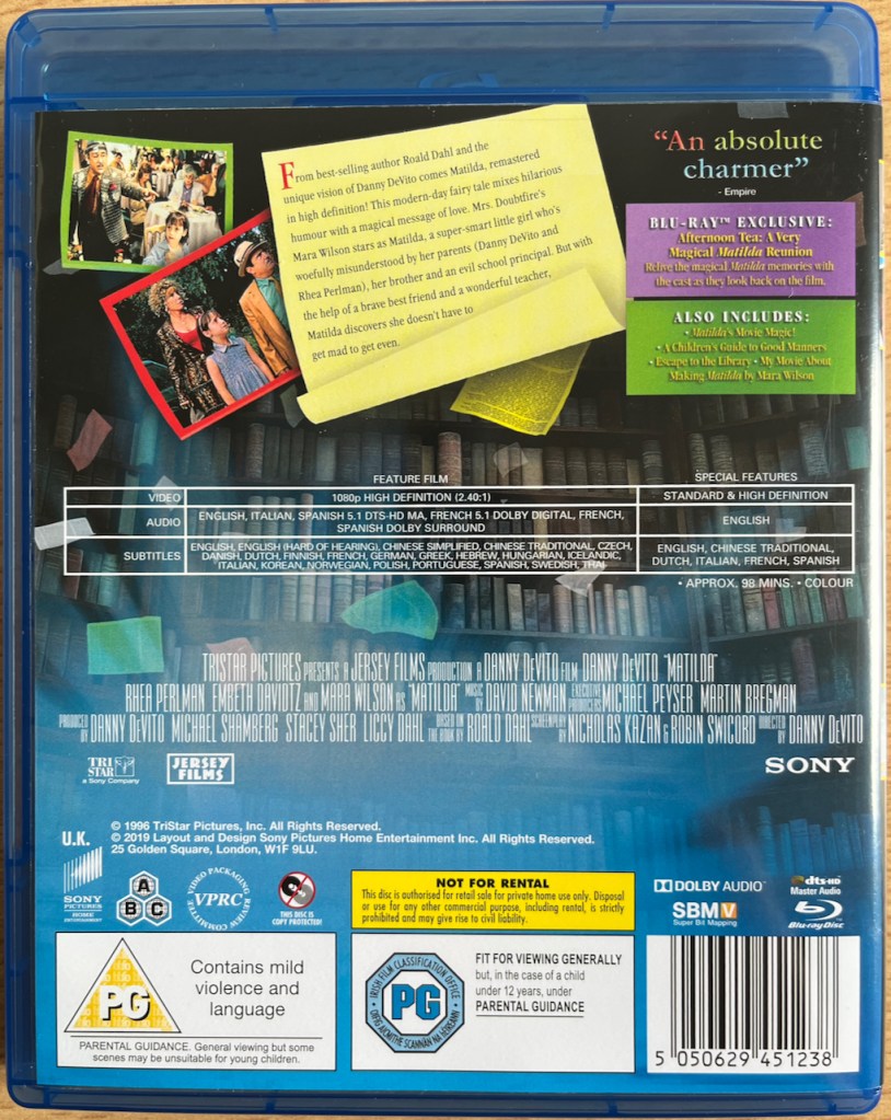 This month I watched two films on Blu-ray that are based on Roald Dahl’s Matilda novel.