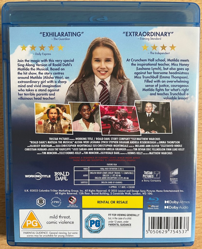 Following on from the old Matilda film, I then watched Matilda The Musical for the first time, which I hadn’t seen when it was in cinemas last year. But given that I love the theatre show on which it’s based, and as it seemed to be getting very good reviews, I was prepared to take a punt and get the Blu-ray.