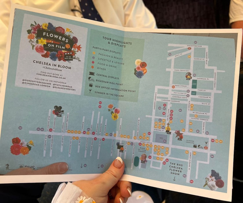This year’s Chelsea In Bloom event was themed around films. The majority of the installations were in King’s Road, Sloane Square and Sloane Street, but several adjoining areas also had a few displays. There were rickshaw rides and walking tours available, but we wanted to take our time exploring by ourselves. So we arrived mid-morning, in the knowledge that we would need several hours to go around both Chelsea and Belgravia. And it did indeed take us pretty much all day, especially as finding everything was tricky as noted above.