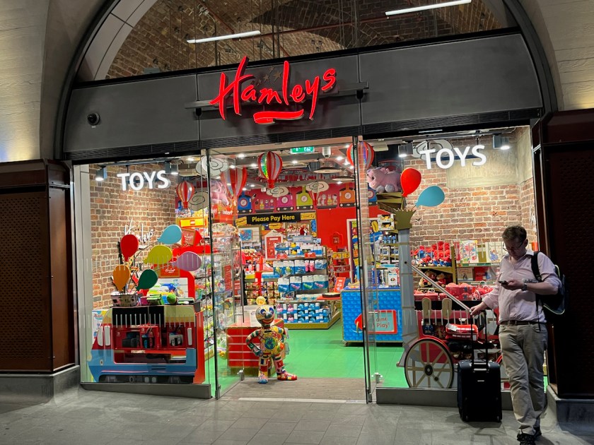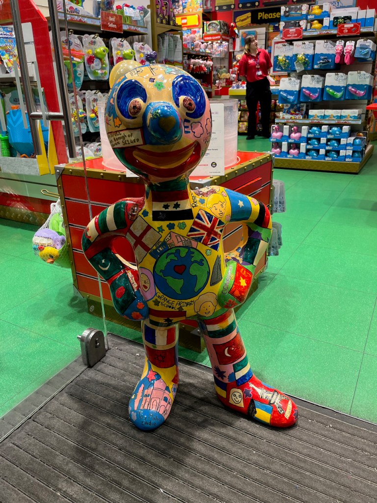 - Our School (Mini Morph) by Grange Primary School – Continue into London Bridge station, and turn right into the big tunnel where the shops and toilets are. A short distance in, this little statue can be seen in the doorway of Hamleys. I never knew they had a little branch in the station until I went looking for this.