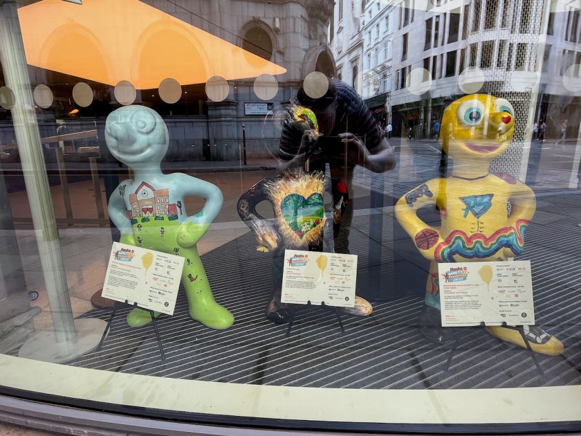 - Morph and Friends Explore London by Elaine Gill – Turn left from Roll With It and you’ll see this one on the path heading towards the City of London Information Centre.
