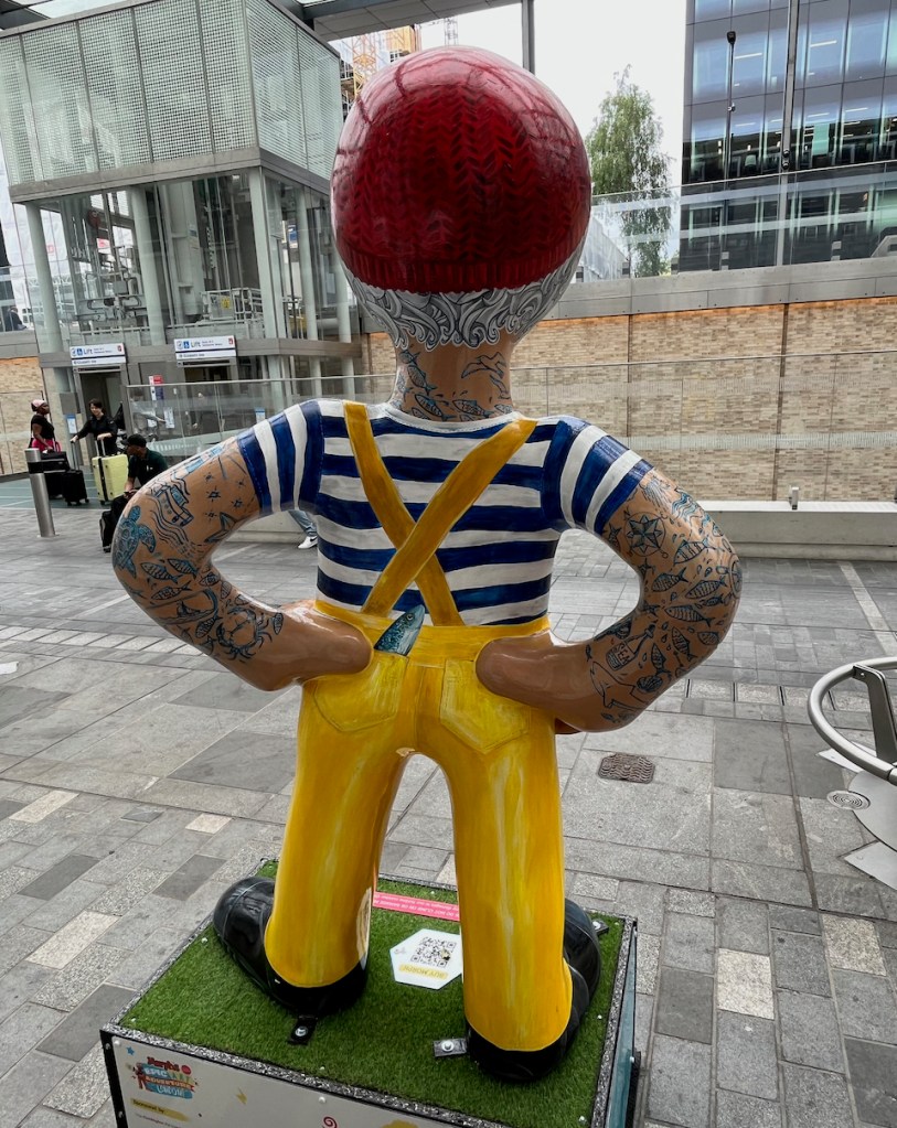- The Adventures of Morph (Mini Morph) by Whybridge Junior School – This is in The Real Greek. You can get there by crossing the concourse from Leon, but you won’t see the statue. Instead, turn left and walk around to the back of the restaurant, and you’ll find him on the floor looking out at you from the back window.