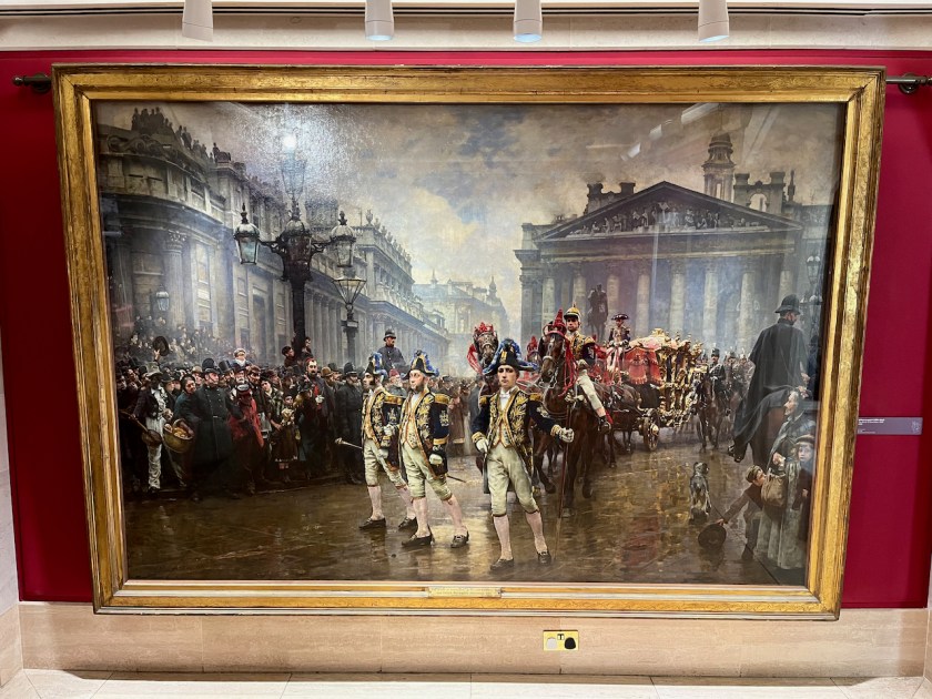 Once I had finished exploring the amphitheatre, I then worked my way back upstairs, looking at all the galleries as I went along, including lots of pictures relating to London and its history, and a room dedicated to Christopher Wren. My final stop was the Big City gallery, which has just closed at the end of July, but it contained absolutely massive artworks relating to the city. And at the back of that room is a permanent installation – John Singleton Copley’s Defeat of the Floating Batteries at Gibraltar – which is so big (7.5 by 5.4 metres) that it occupies a wall spanning two floors! So you actually get the best view of it by looking over a railing in the Victorian Gallery upstairs.