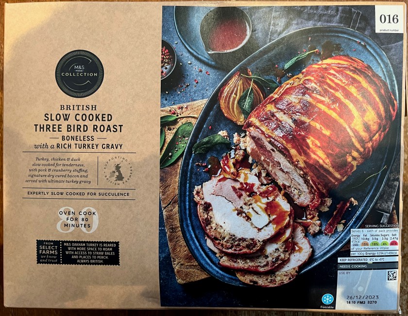 Naturally Mum and I have eaten lots of nice things at home, many of them not at all healthy, as is the festive way. We got plenty of food from M&S for instance, in particular our turkey crown and three bird roast from their Food To Order service, which cooked really nicely, as well as trimmings and treats when browsing the store in general. There’s always so much temptation in there, and I’ve had a few nice offers on their Sparks loyalty card too, including a free farmhouse loaf of bread that we enjoyed.
