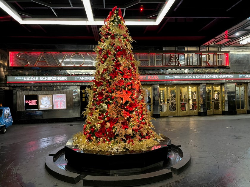 Claire enjoyed her food and drinks as well, and she also gave me some very nice chocolates that I shared with my mother. We also had a nice little walk after the meal, as I showed her the lights and decorations in Covent Garden and the Strand – including a look at the lovely tree outside the Savoy hotel, which I hadn’t got around to seeing on my previous walkabouts in November. So thank you to Claire for that lovely afternoon and the gifts!