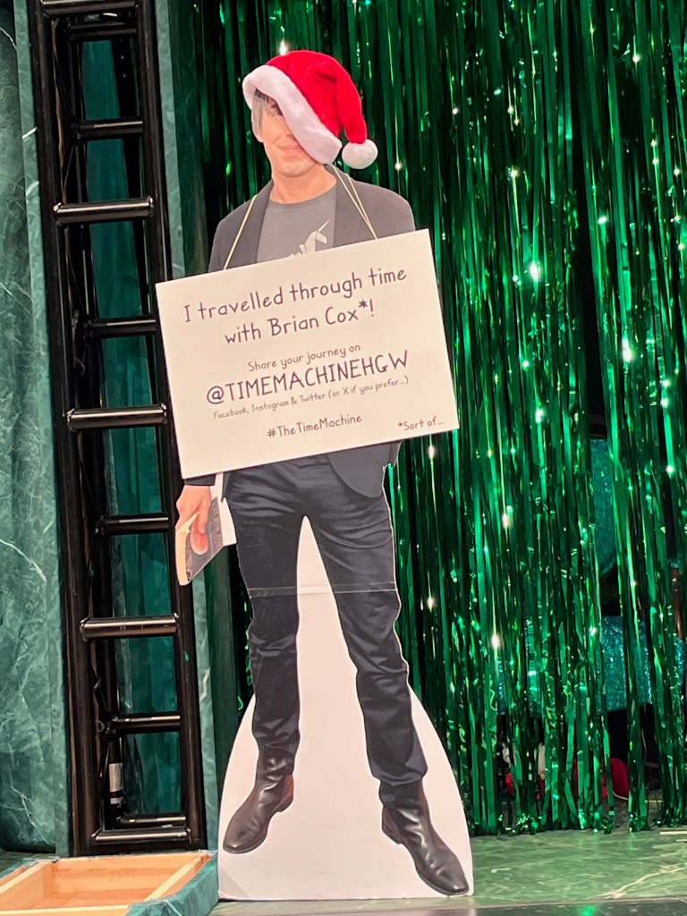 The day after seeing The House With Chicken Legs with Emily, I went to the Park Theatre in Finsbury Park by myself to see The Time Machine – A Comedy. This also included a touch tour and audio description, this time delivered in-house by the wonderful Roz Chalmers, who I’ve previously met at various other shows around London, so it was great to see her again. The cast of the show very kindly came out to introduce themselves at the start of the tour, before going off to get ready, and then some lovely members of the backstage crew helped us to explore the time machine, costumes, hats and props.