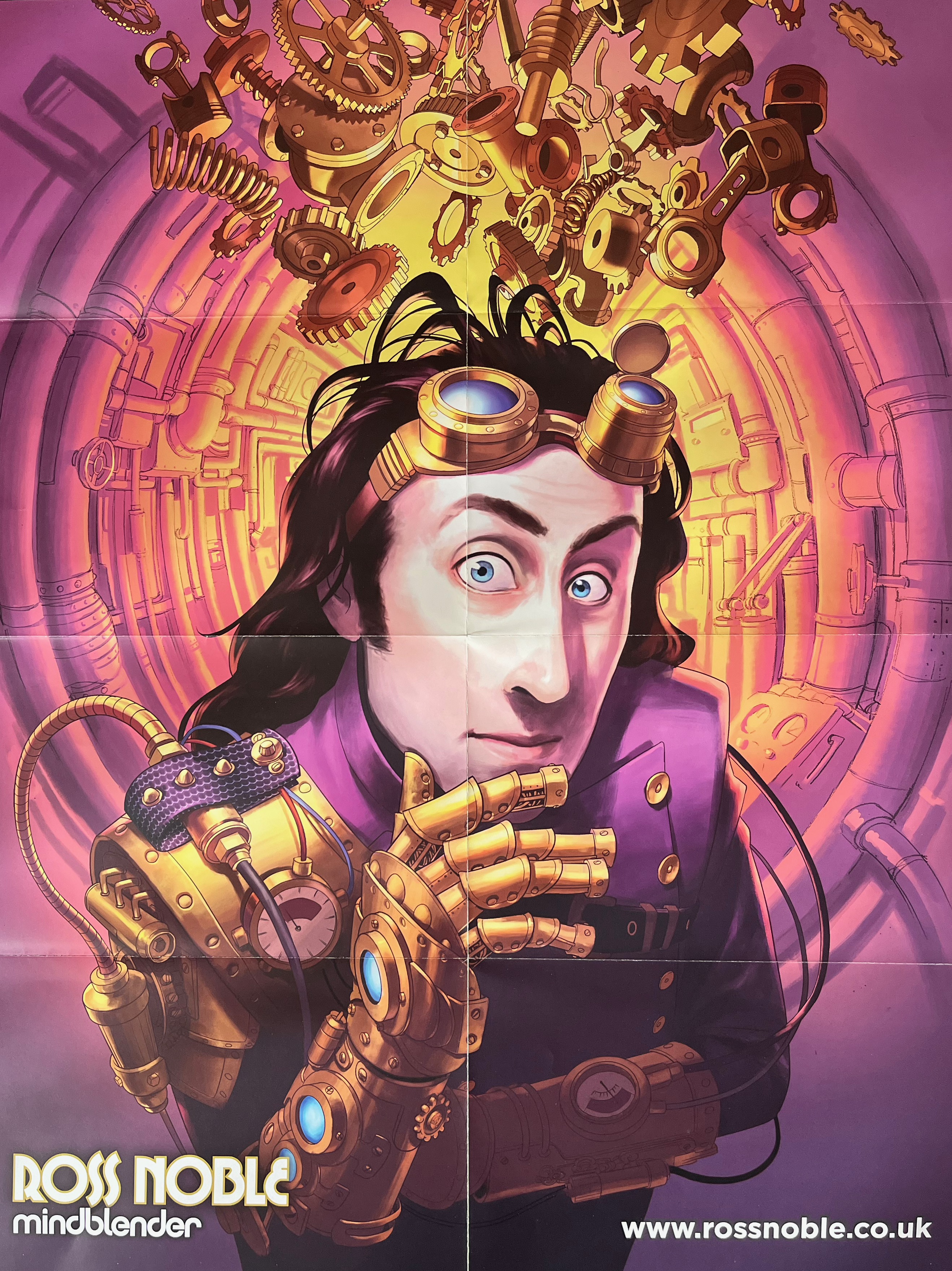 Once again Ross subjects himself to a couple of hours alone in a room, knowing full well that he’ll lose his mind during that time. To be fair though, he does actually talk a bit about the show to begin with, including the title, his shirt and shoes, and the steampunk style disused robot factory that serves as the set on stage. He soon moves on to other things though, naturally.