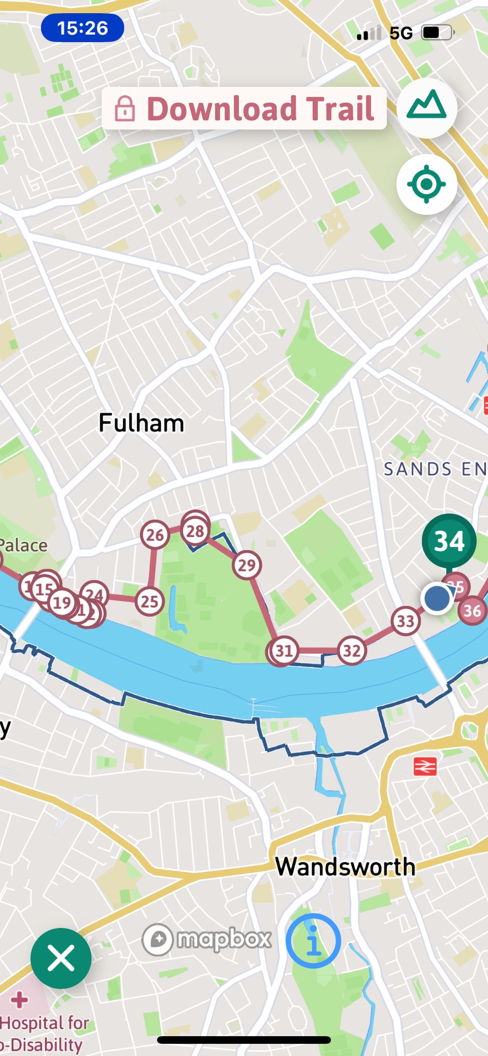 Incidentally, I didn’t get lost on that big diversion away from the river, because I was using the Go Jauntly app that Transport for London have partnered with. It has a whole set of guides for different sections of the Thames Path, as well as for many other walks in London, so I’ve been trying it out for all these Thames walks I’ve been doing lately, including the ones I did in East London last month. It makes it pretty clear where to go, with an interactive map, text instructions and photos, so I found it really helpful, particularly in this instance where I wouldn’t have had a clue about the best route to take. It also points out some interesting sights along the way that I would otherwise have missed. And there are PDF guides you can download from the website for each section, containing illustrations of the map and the same text instructions as in the app, so they’re also useful.