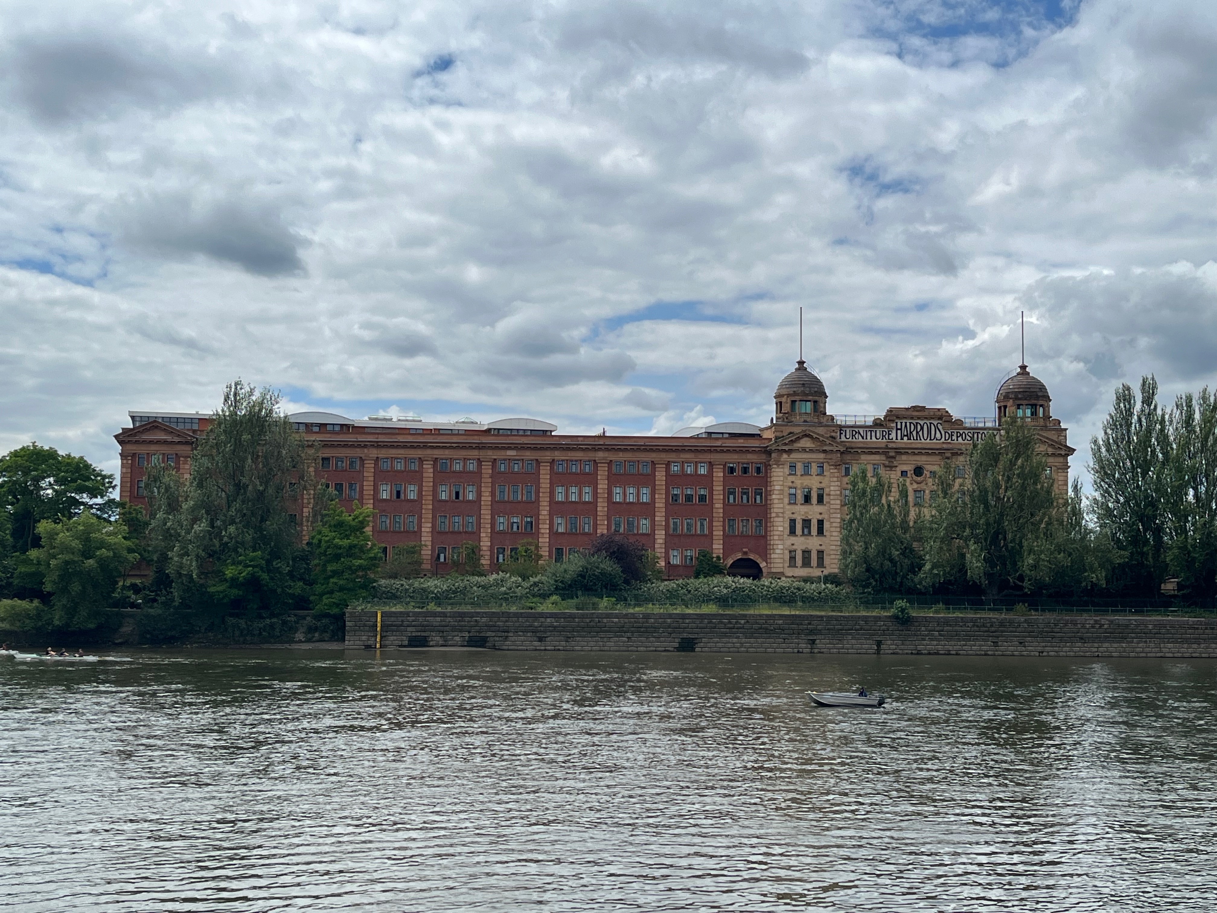 Early on during the walk, you can see the historic building of Harrods Furniture Depository on the south side of the river, which is now residential apartments but still contains the old sign on the outside.