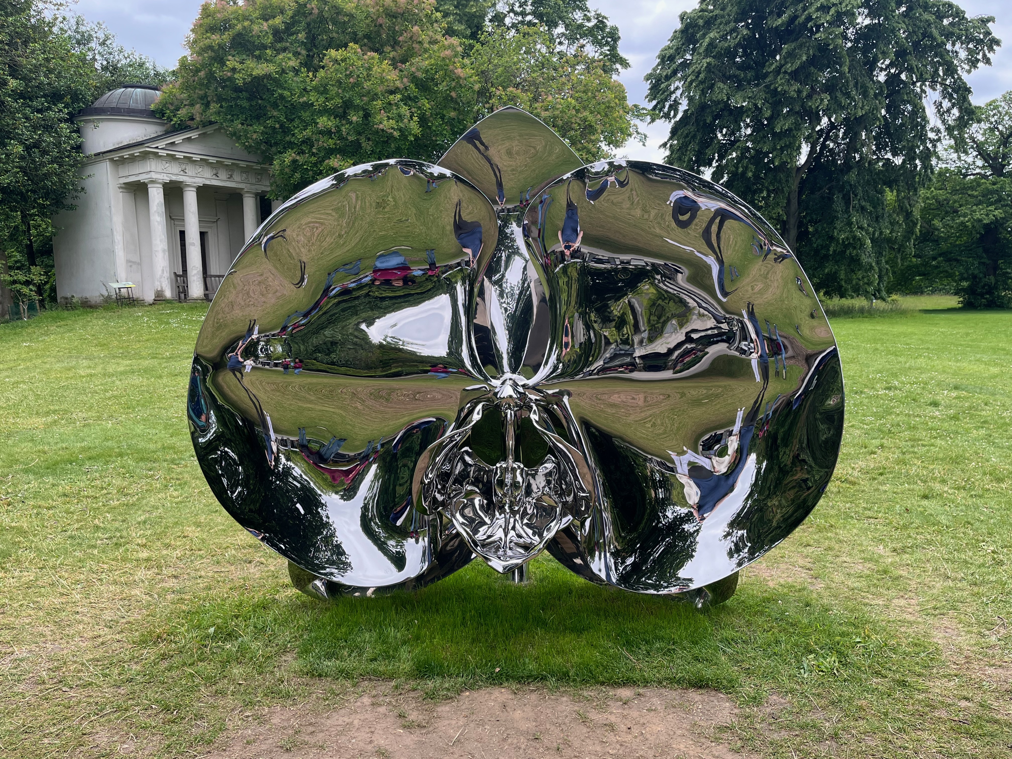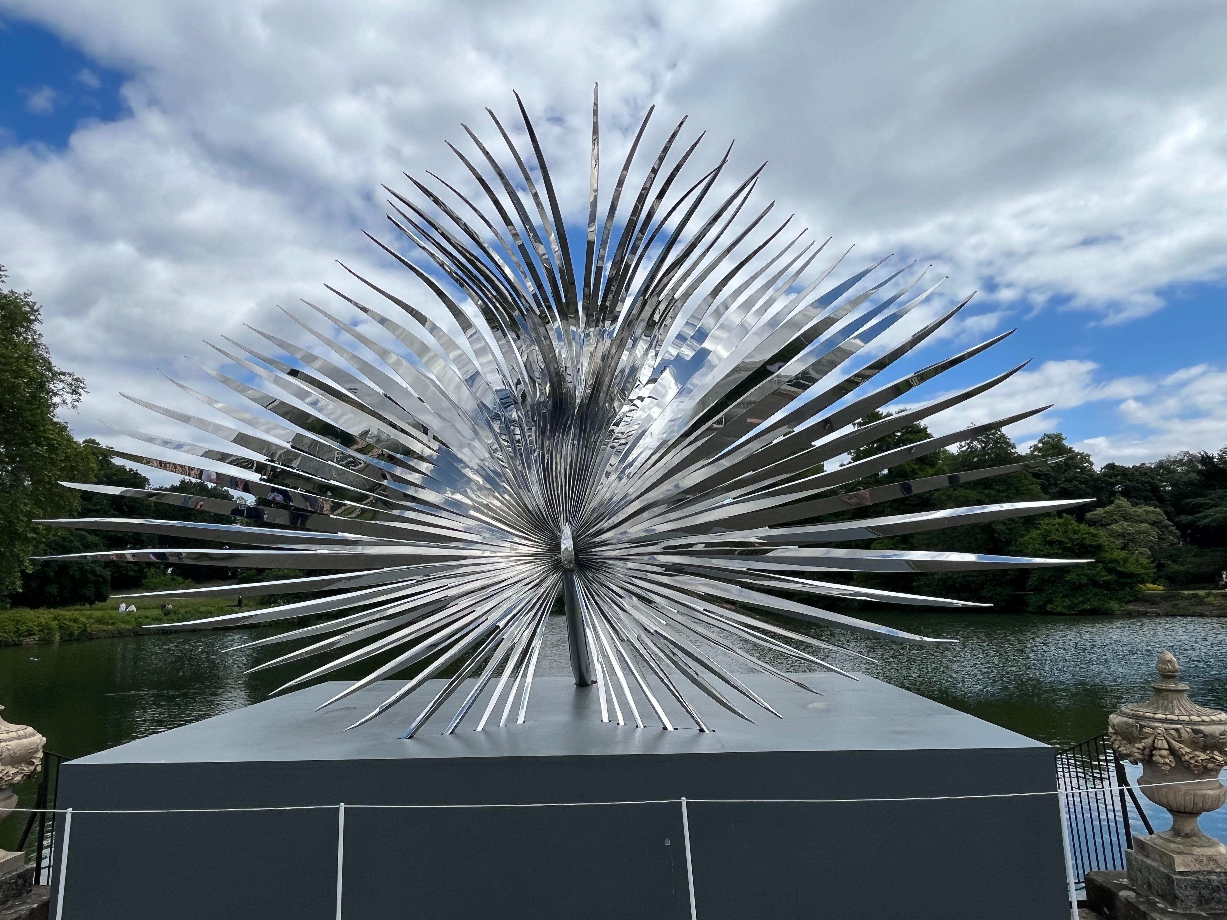 Indeed, there was quite a variety for us on this hour-long tour. For a start, we got to feel a couple of the large reflective stainless steel sculptures that form part of Marc Quinn’s Light Into Life series throughout the park. We looked at two of his artworks based on orchids, while a couple of others I had seen earlier in the day were related to palm trees with their spike-shaped leaves.