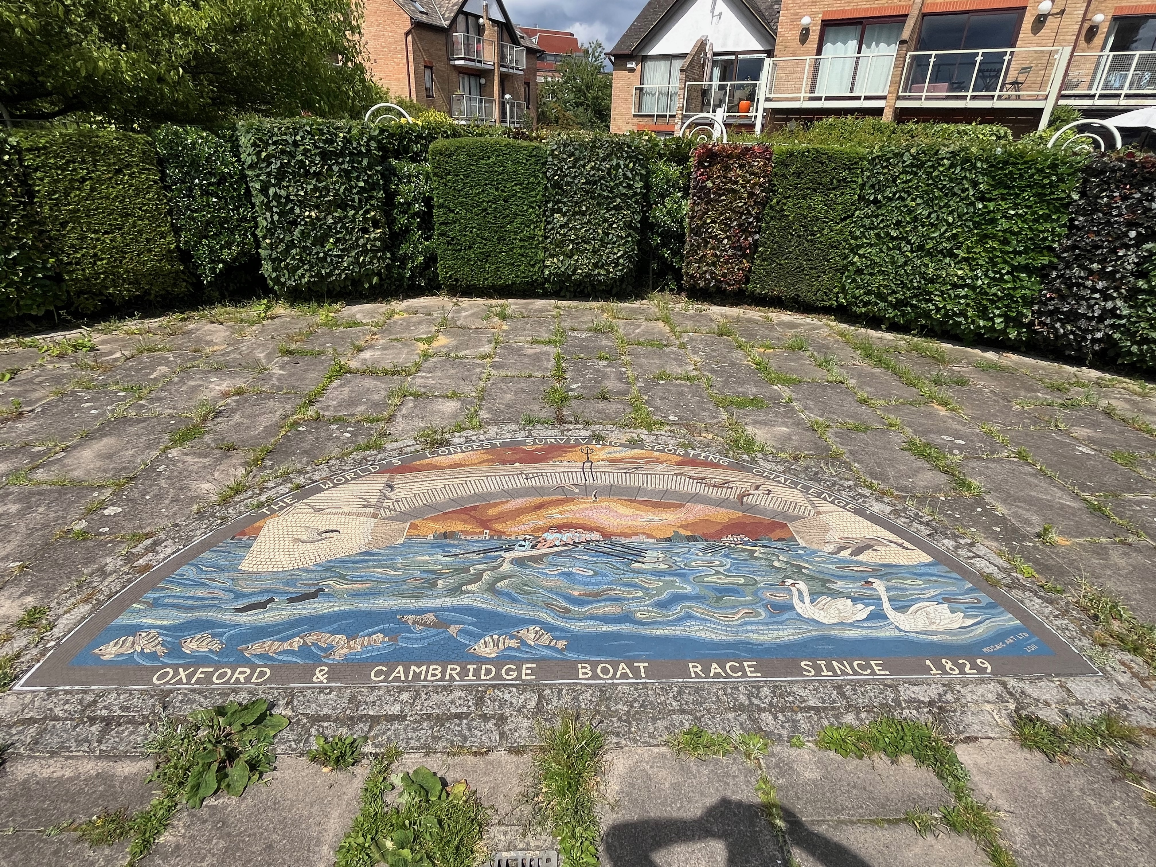 I was also walking past the opening section of the Oxford & Cambridge Boat Race to begin with, which starts at Putney Bridge and heads west, past Hammersmith Bridge and continuing all the way around to Chiswick Bridge. So naturally there are several boating schools on the south bank in the Putney area, and I saw people rowing along as I heard instructors issuing guidance to them. Meanwhile, on the north bank where I was, there’s also a beautiful mural commemorating the boat race, so that was a highlight worth finding.