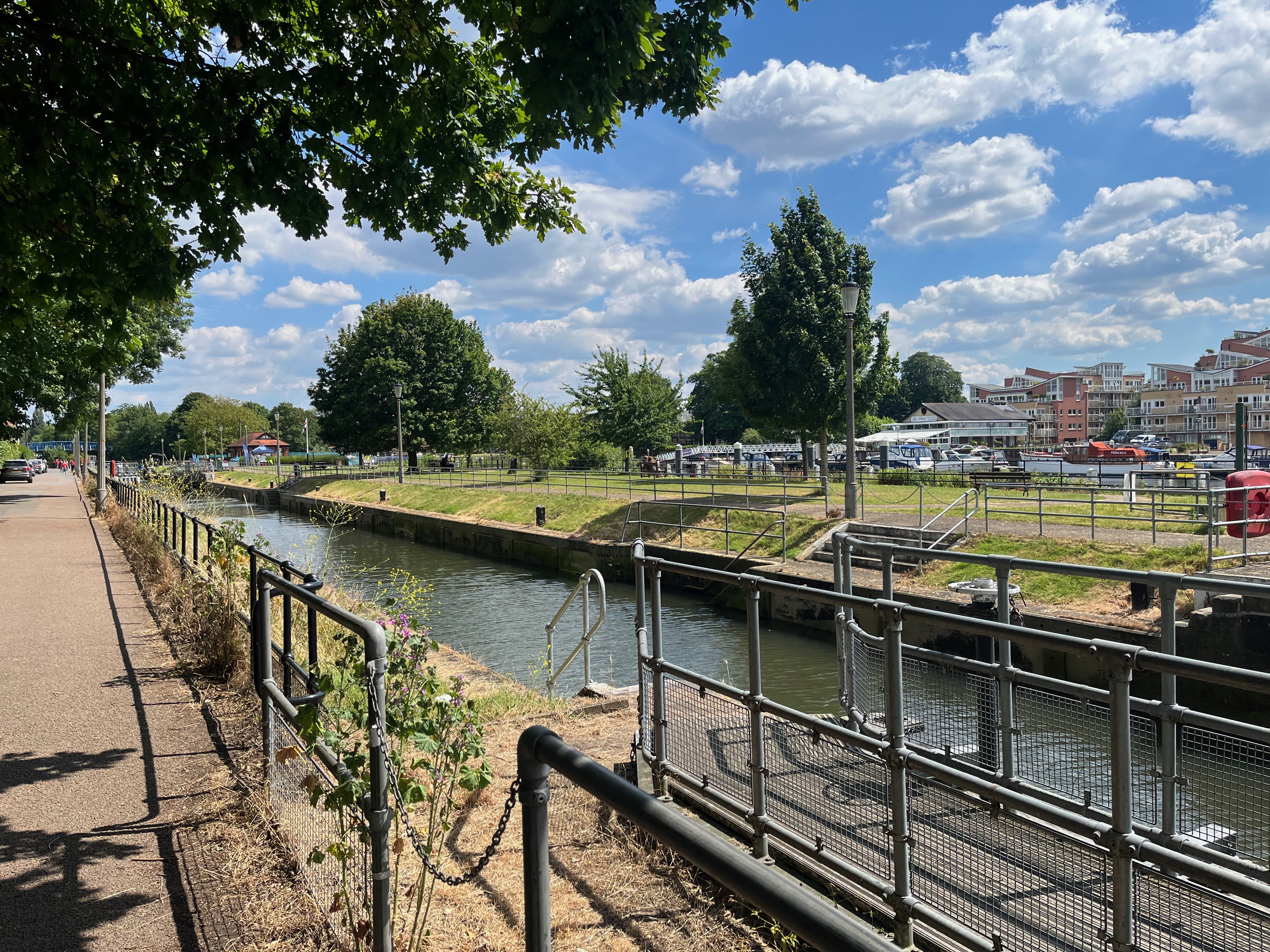 The scenery is lovely to look at and there are many boats along this stretch of the river. A big section of the path is lined with trees as well, that form a canopy overhead providing welcome shade, plus we could hear lots of birds twittering away quite happily. It feels like you’re walking through a wood sometimes, rather than by a river, and it’s very calm and peaceful, even with the cyclists that whizz by regularly.