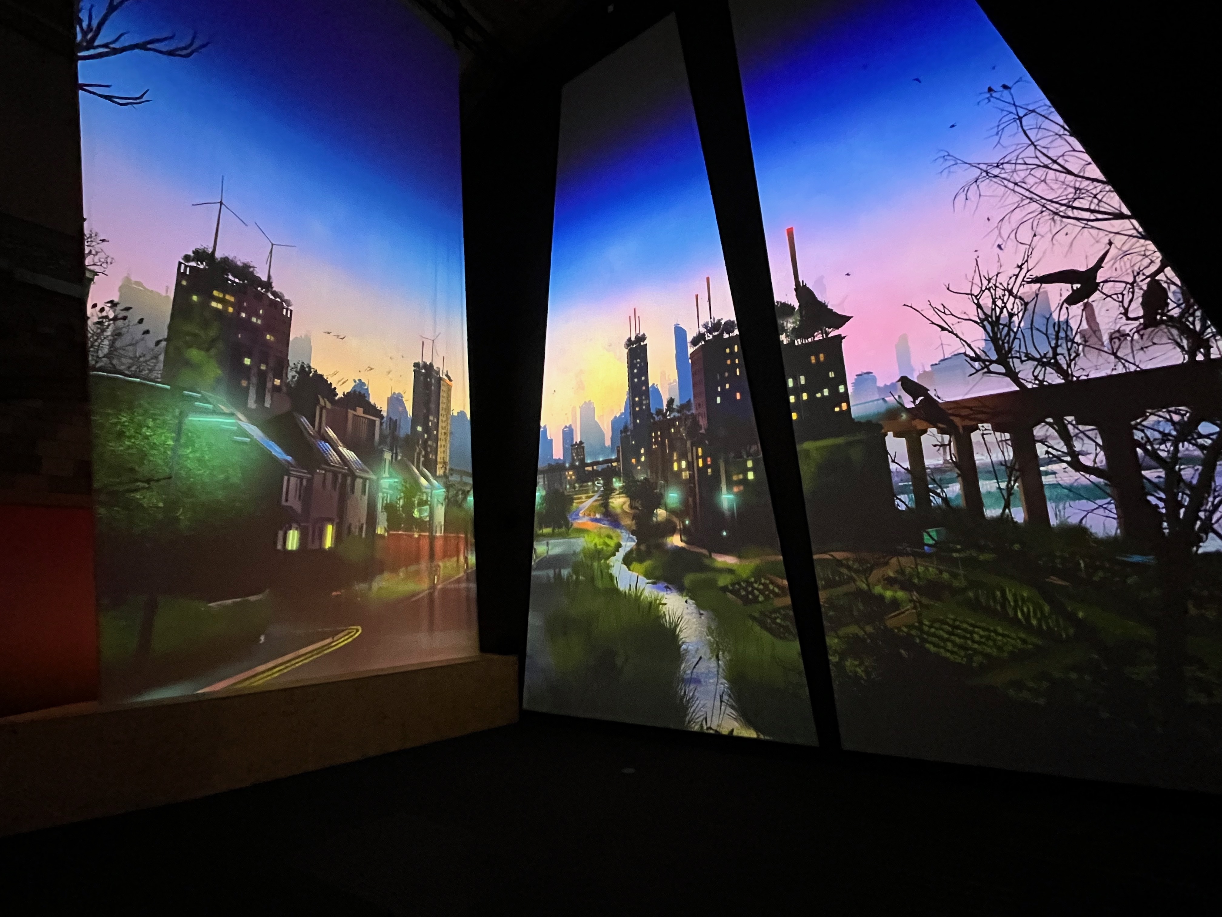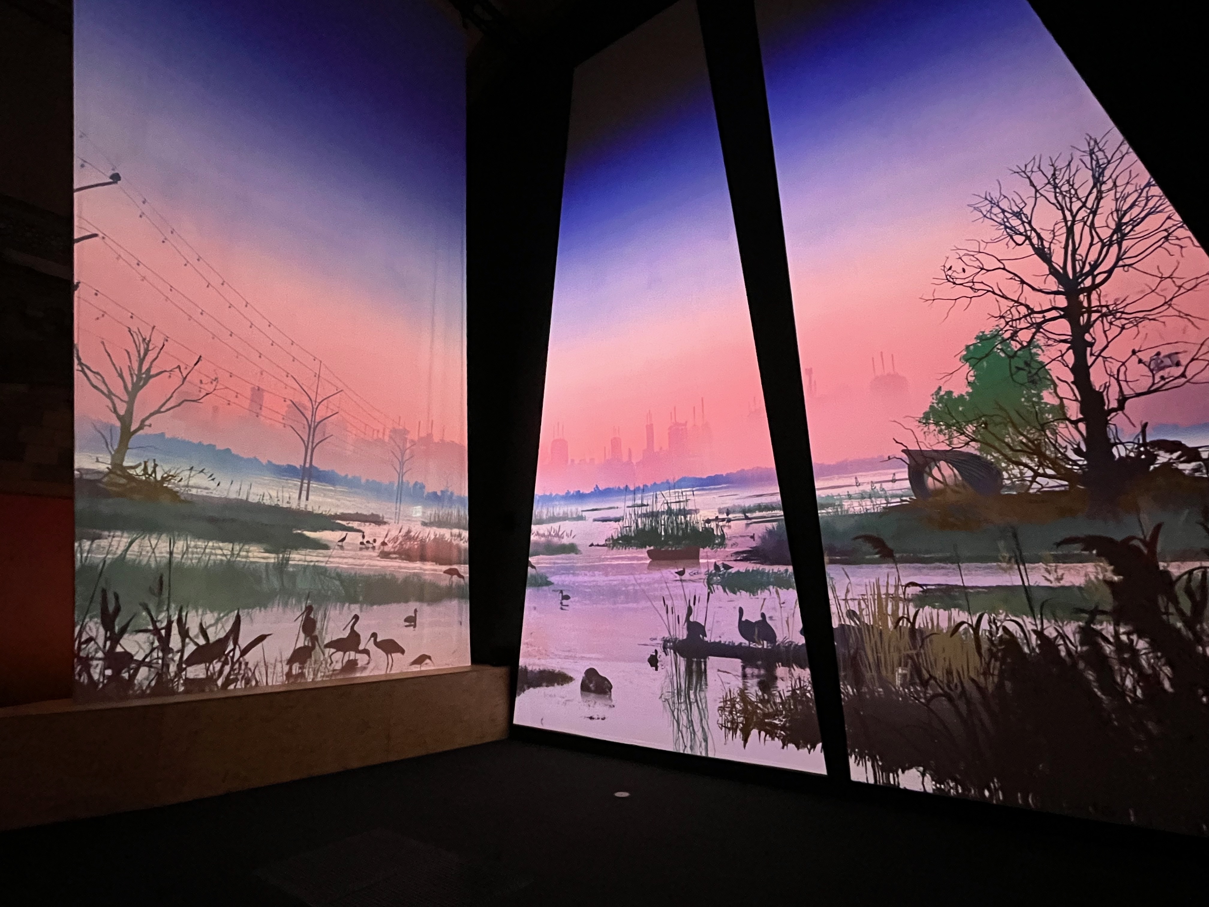 On the other hand, there were also some big vertical screens in the exhibition showing some cool footage that were much easier to see, and there’s a large display covering a couple of walls at the end that shows how birds could be a much bigger and welcome part of the landscape by 2050 with our help (granted, I still had to use my monocular to see the birds in the latter case, but it was much easier in that instance). So I don’t know why some of the other screens had to be so small and placed at a distance, instead of just using regular screens like they had for the interactive games, which would have been ideal.
