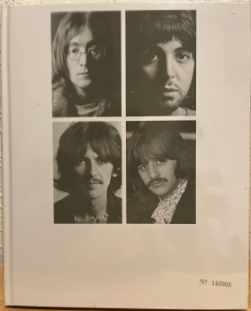 Front cover of the White Album box set. Against a white background are 4 portrait black and white photos of the 4 band members, arranged 2 by 2.